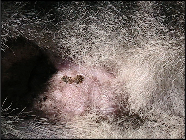 - Lesión seca, desinflamó, se nota la salida de algunos pelos.