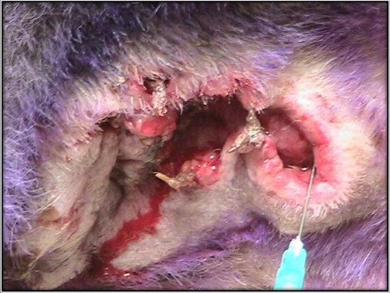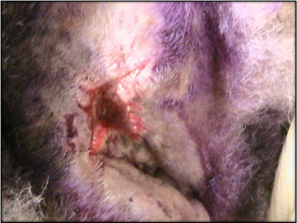 - A principio de este año llevaron a otra clínica y deciden operar la glándula adanal derecha, presentó dehiscencia de puntos y se hace necesario una cicatrización por segunda intención.