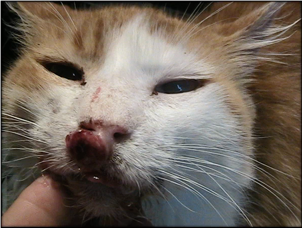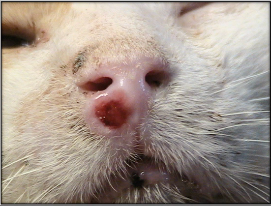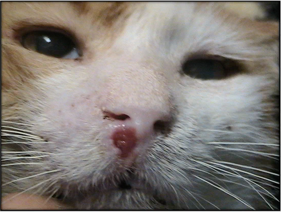 - Presenta una neo-formación en nariz coincidente con un granuloma eosinofílico felino.