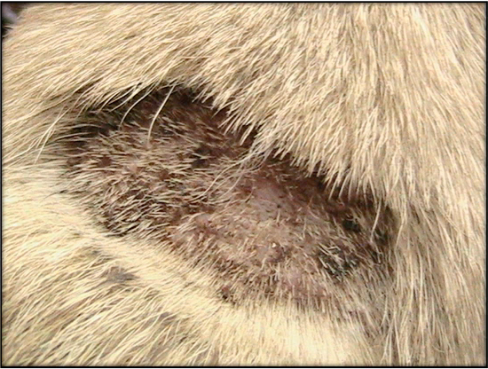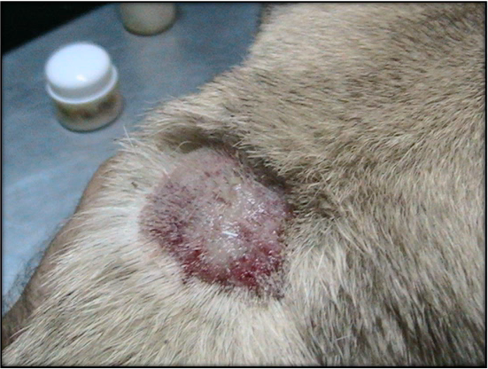 Esta corresponde a una lesión de piel que la dueña refiere mejoró considerablemente